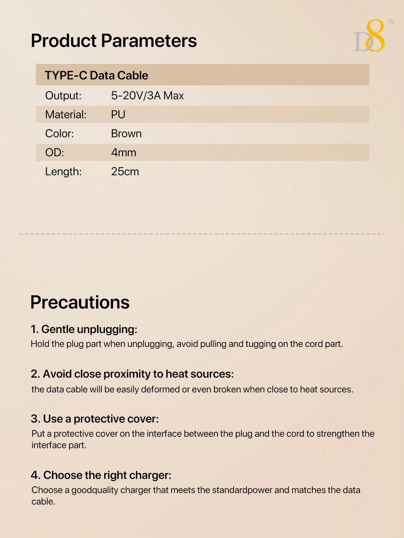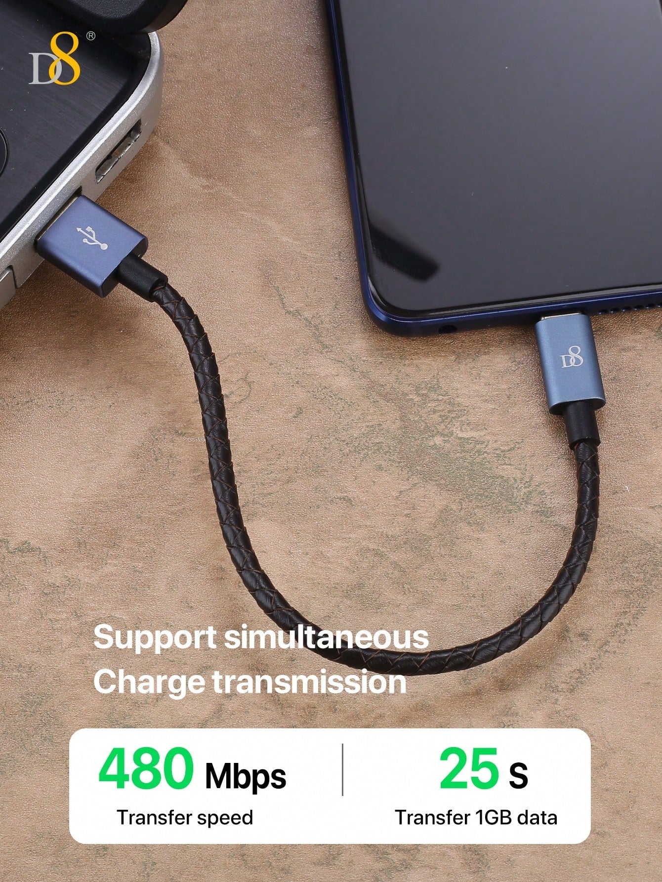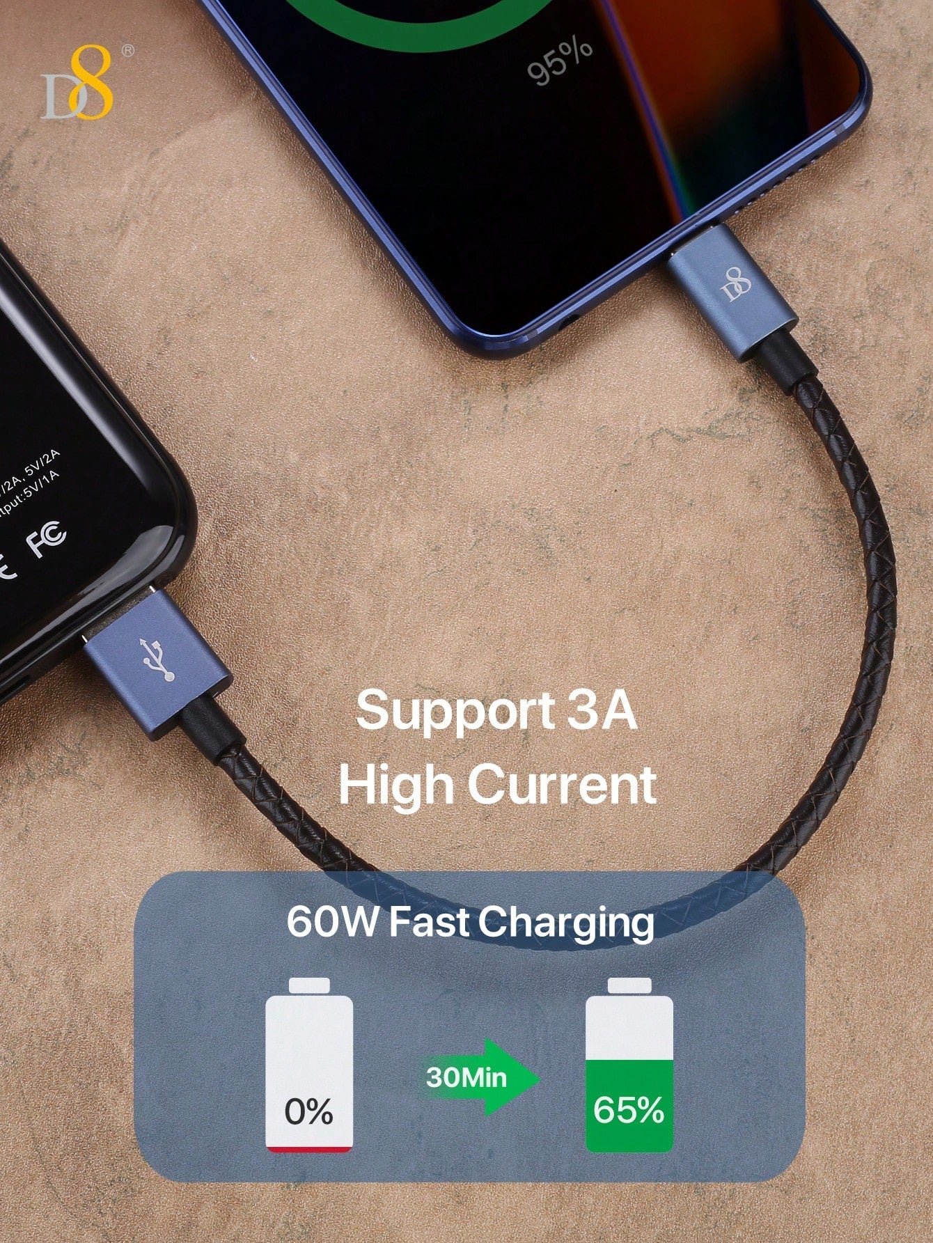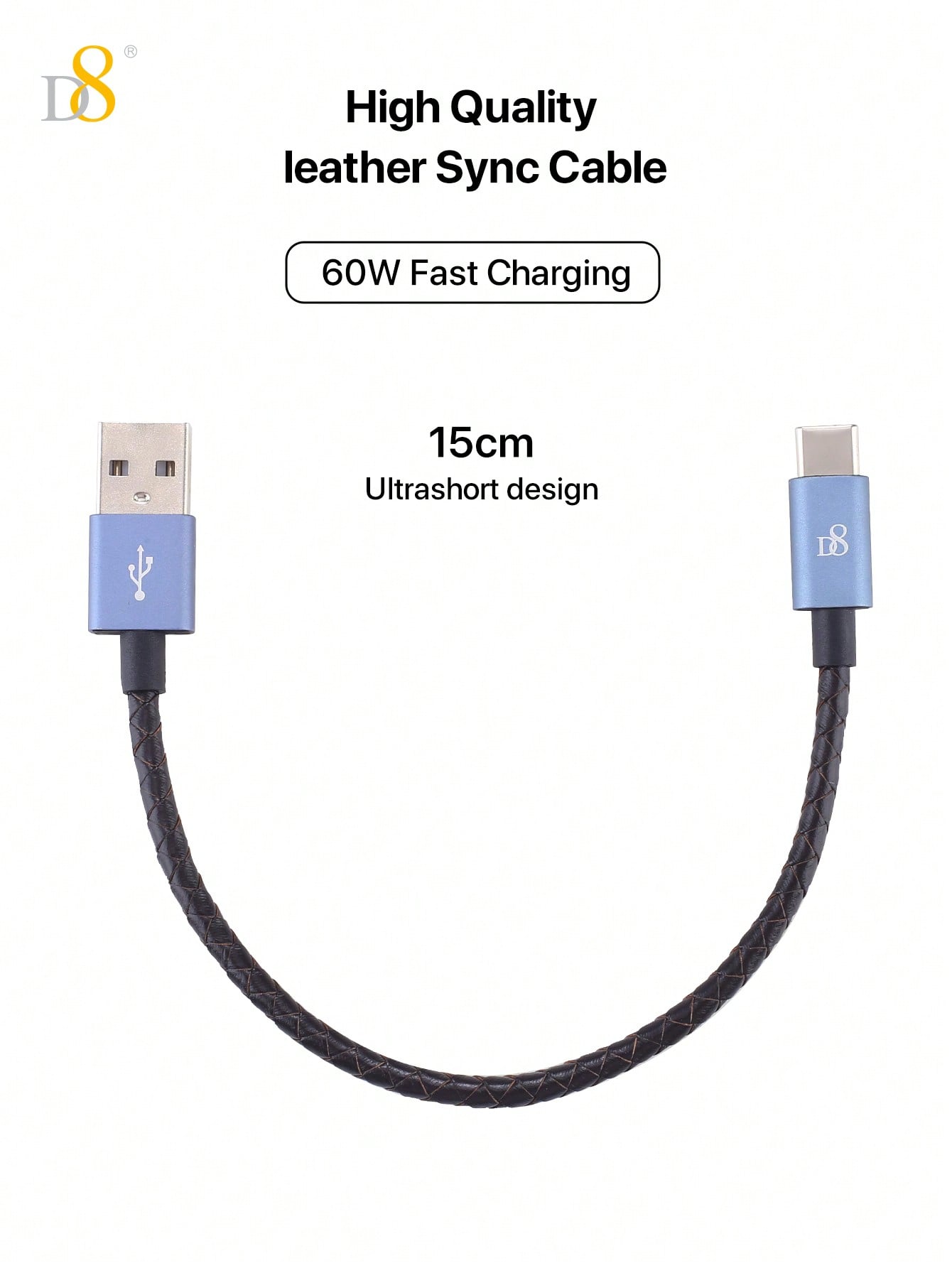 🔌 D8 프리미엄 가죽 USB A to C 충전 케이블 (0.2m / 60W)