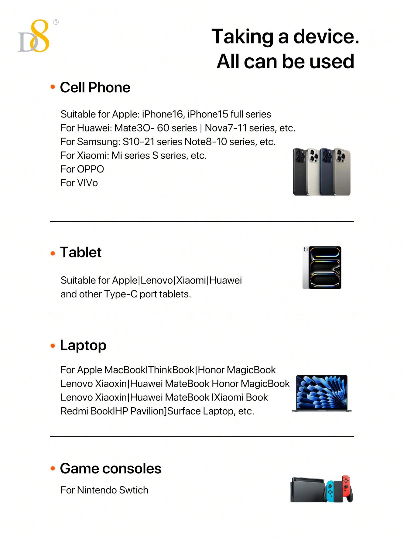 아이폰 16 / 갤럭시 S24 / Z 플립6 등 모든 USB-C 기기와 완벽 호환됩니다.