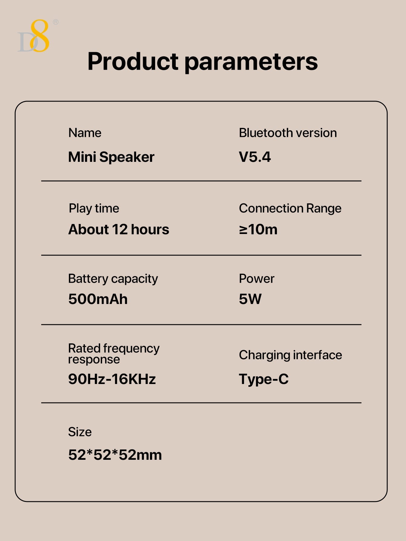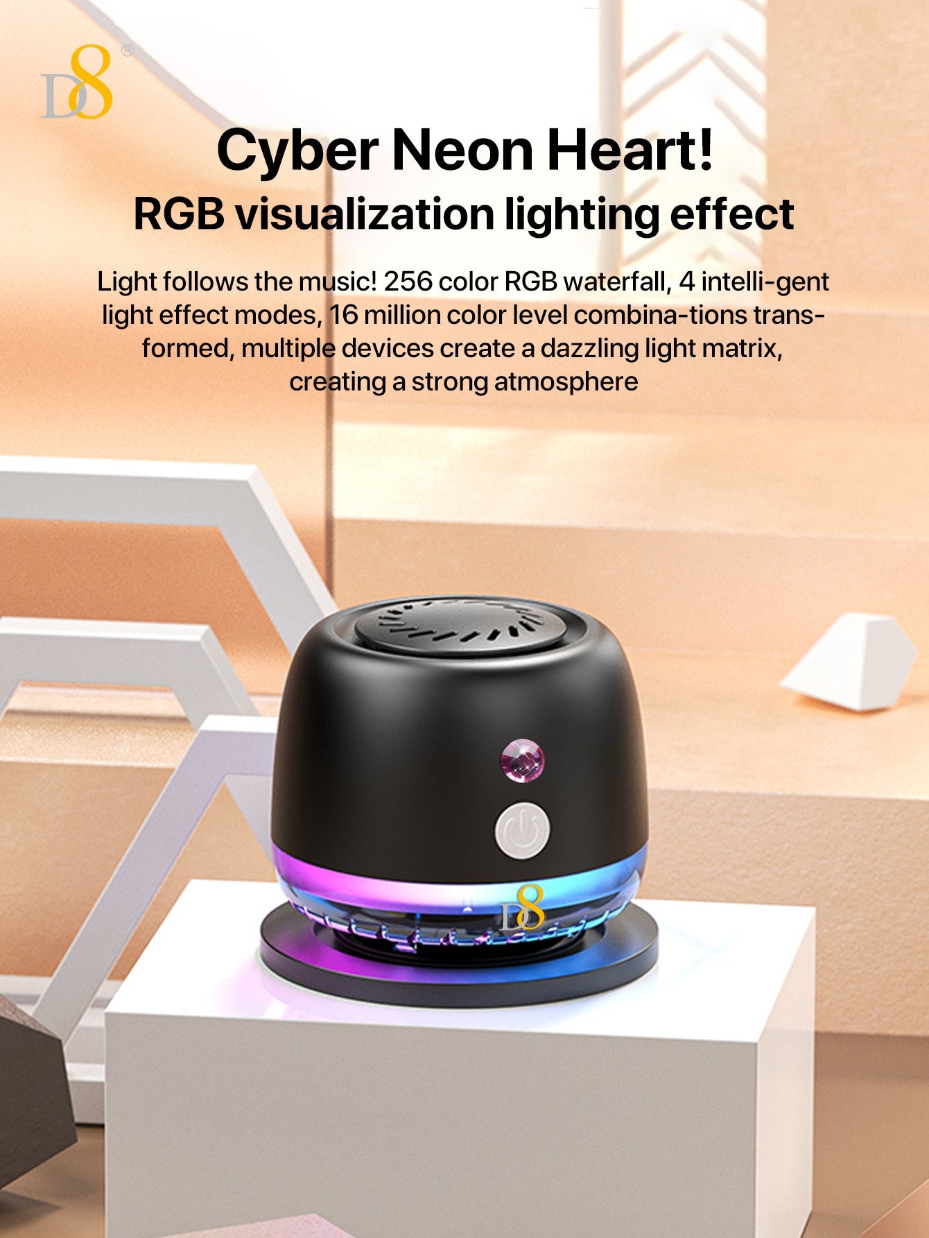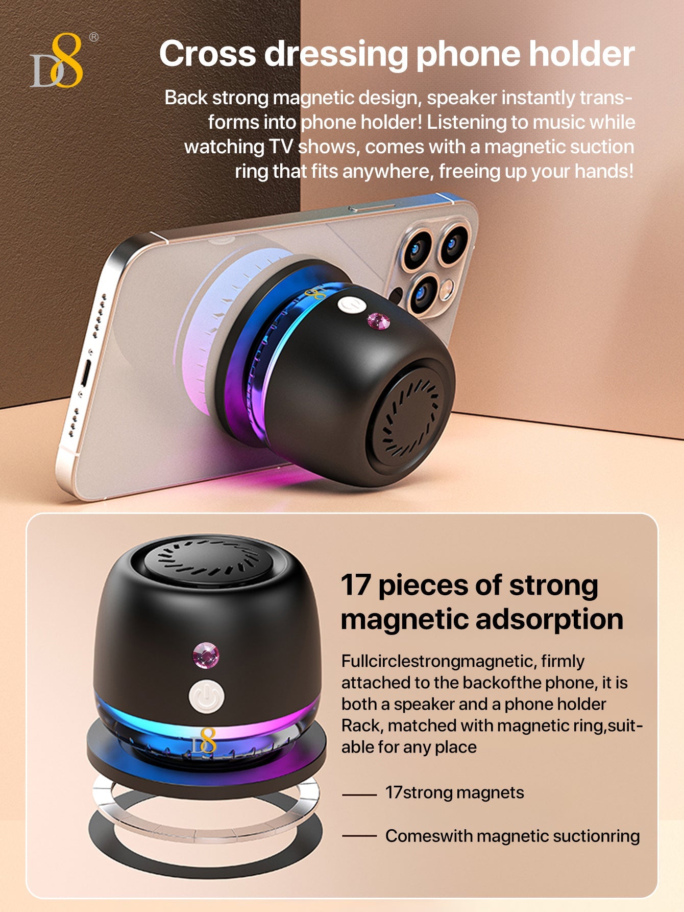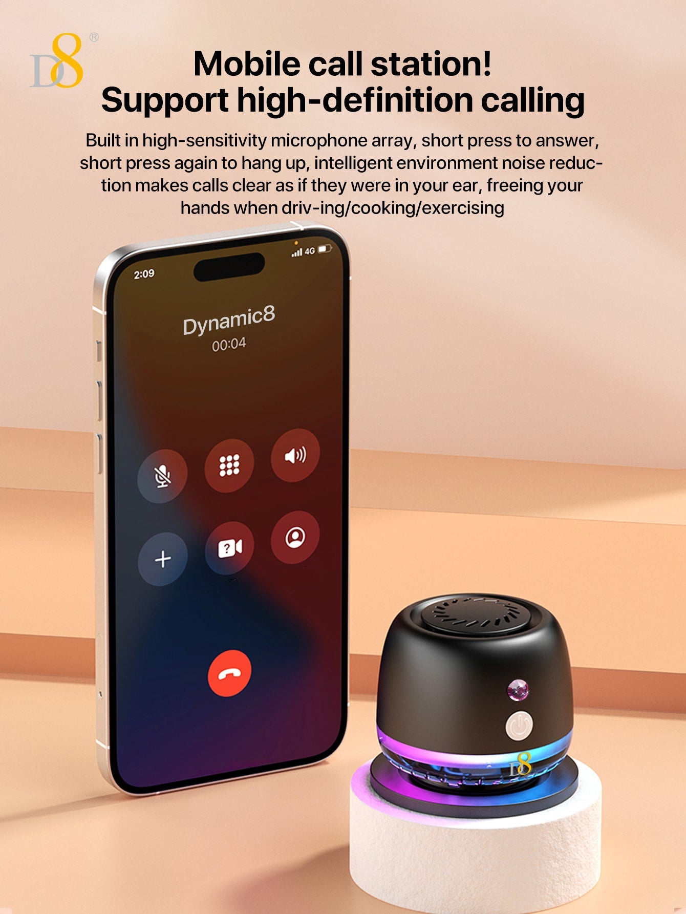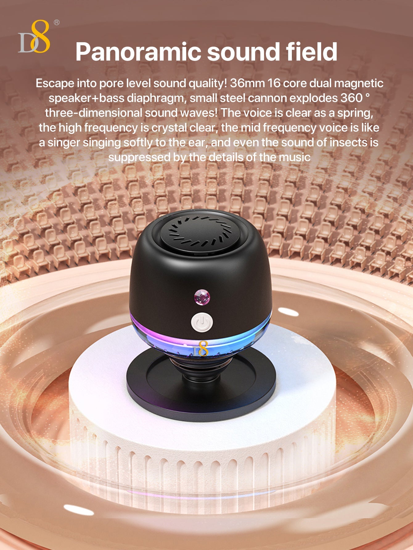D8 블루투스 스피커는 혁신적인 접이식 에어 캡슐 구조와 강력한 5W 내장 마그넷 베이스 사운드, 그리고 무드 있는 RGB 조명으로 음악, 영상, 통화 등 모든 상황에서 완벽한 오디오 경험을 제공합니다.
