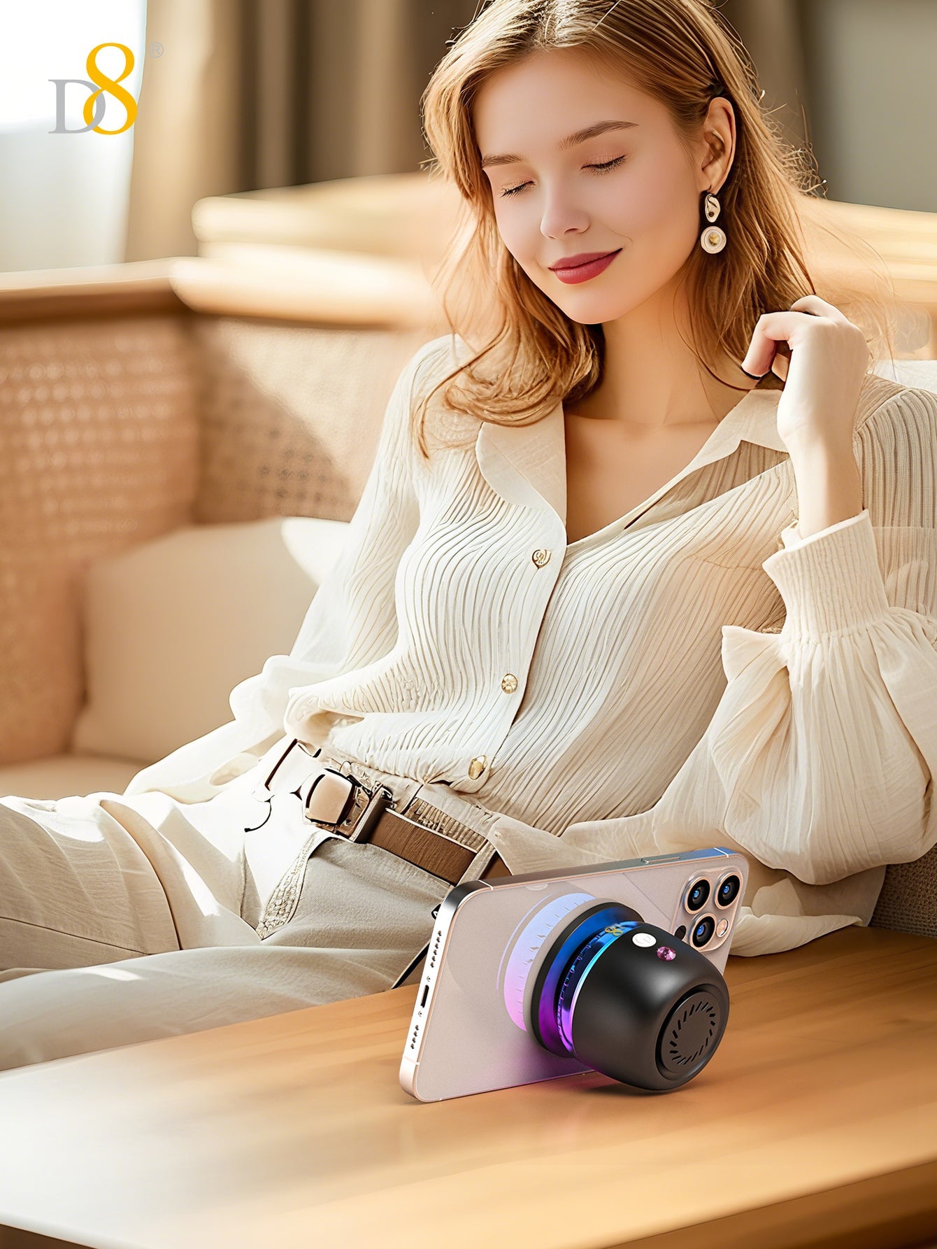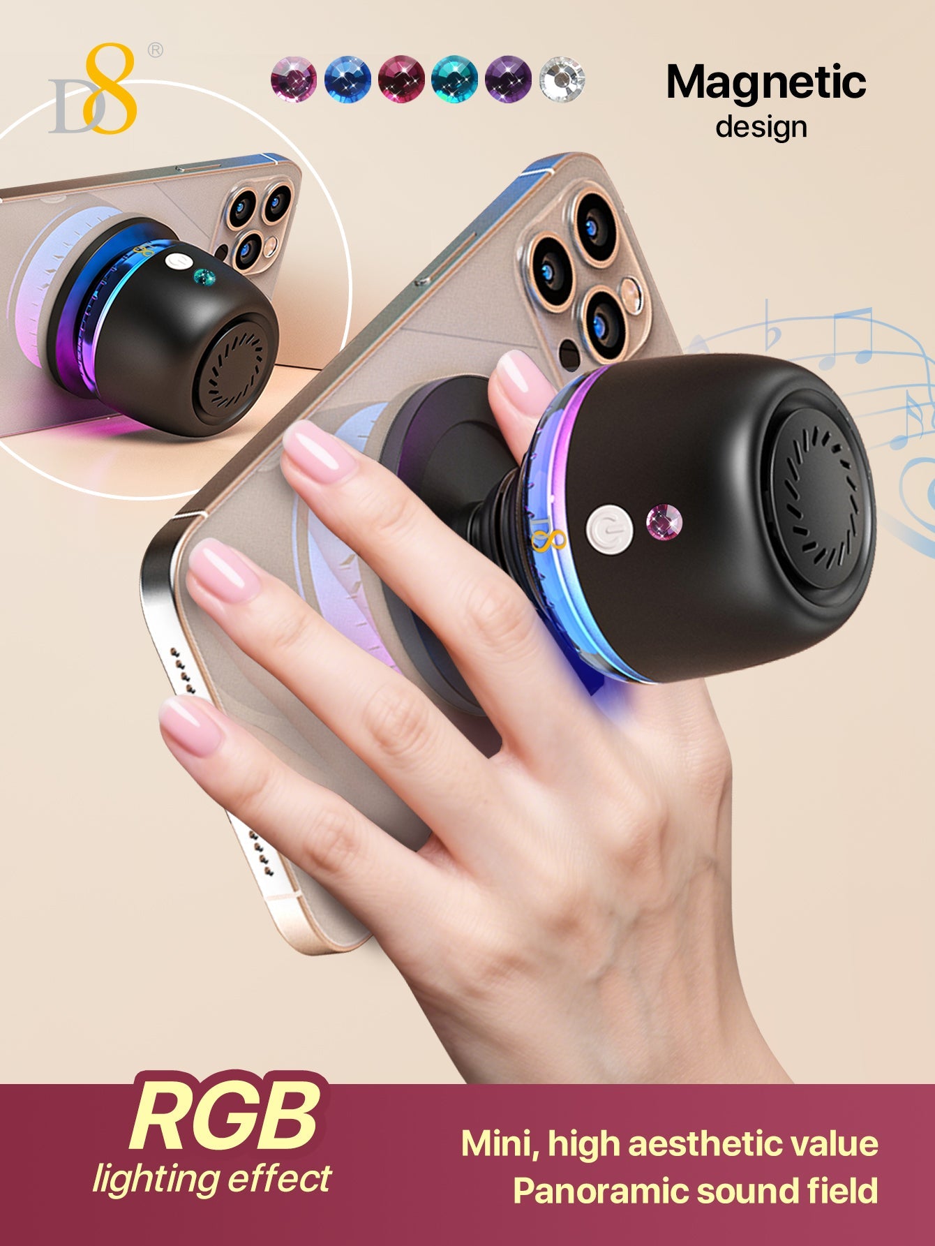 D8 무선 마그네틱 블루투스 스피커 접이식 실리콘 에어캡슐 | 5W 베이스 스피커 | RGB 무드등 | 10시간 연속재생 | 아이폰 거치대 겸용