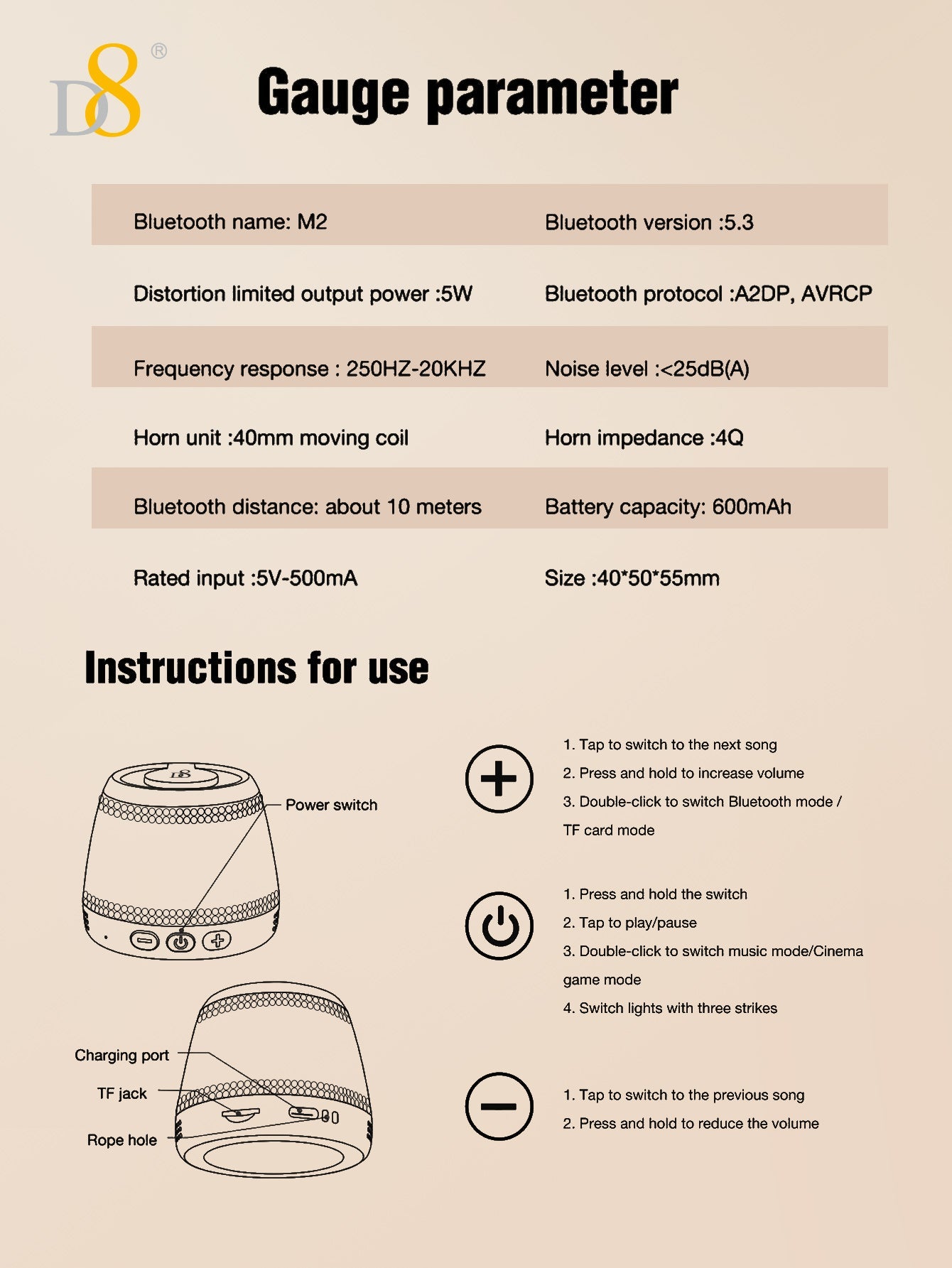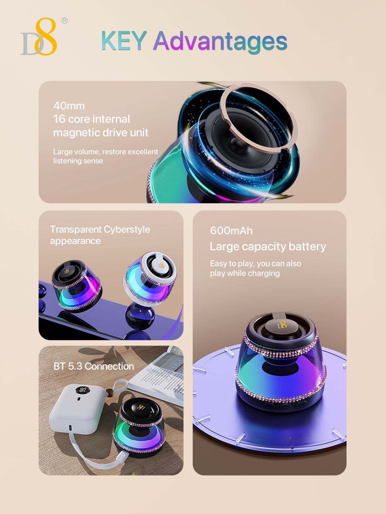 D8 무선 자석 블루투스 스피커는 사운드, 디자인, 휴대성을 모두 갖춘 올인원 포터블 스피커입니다.