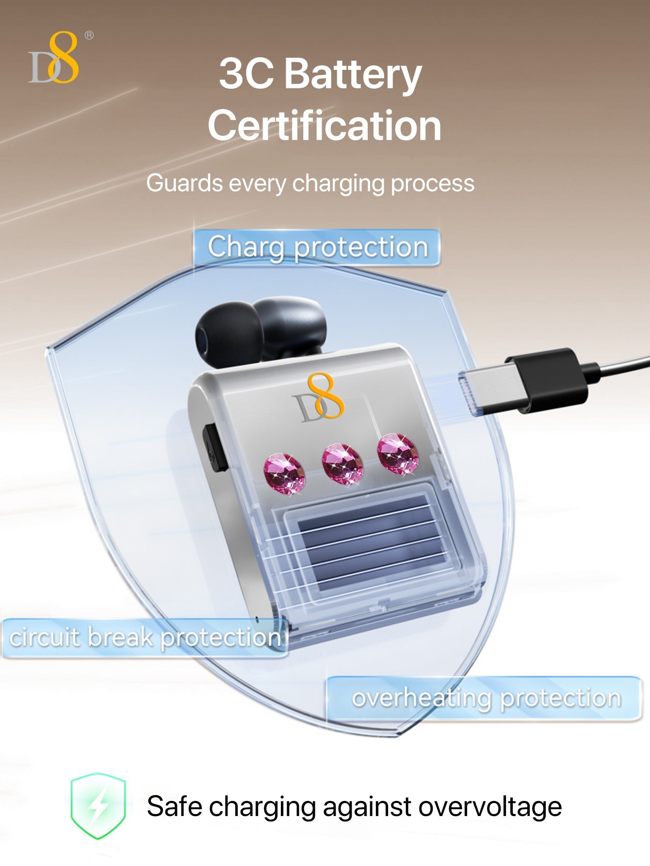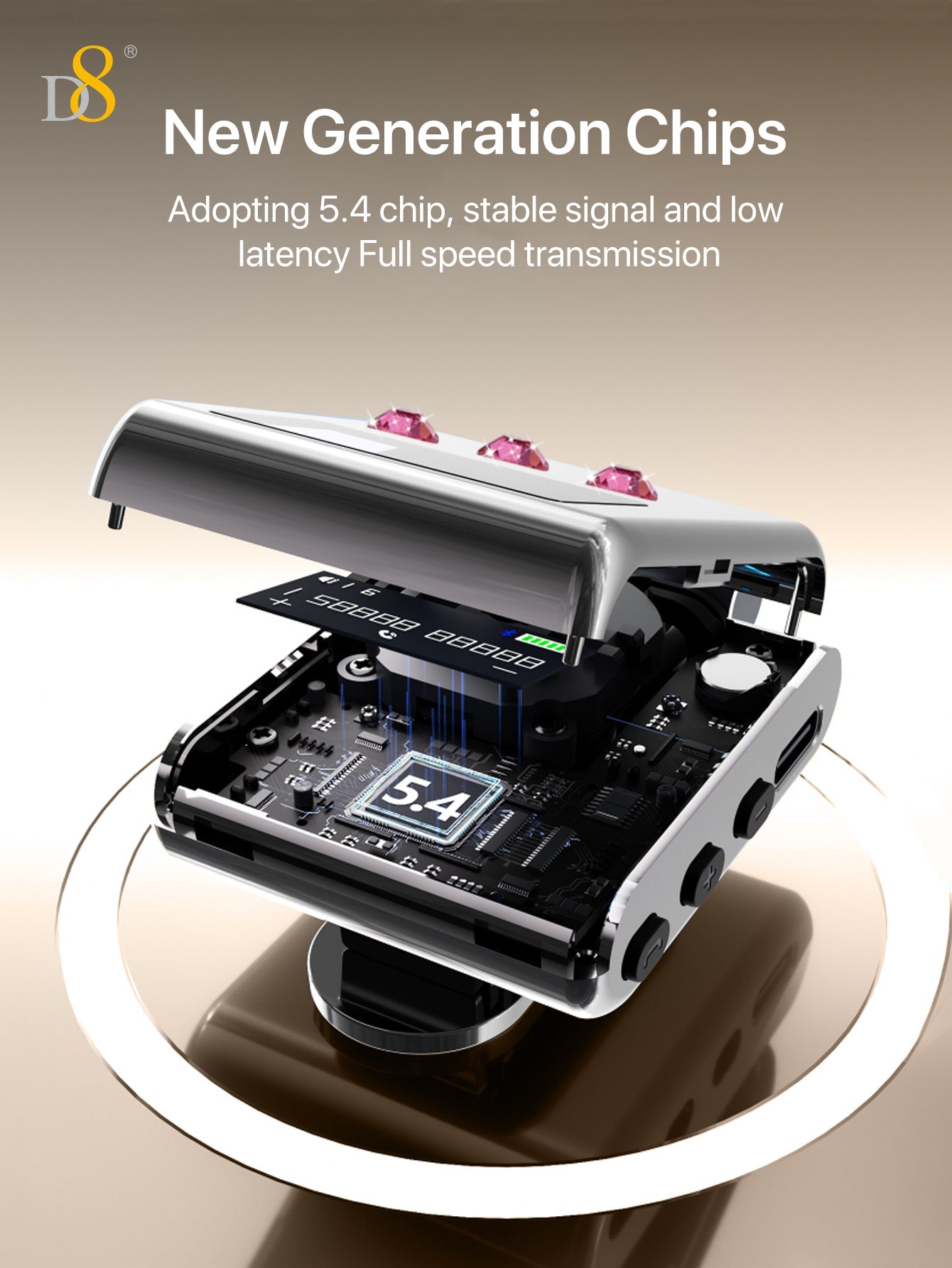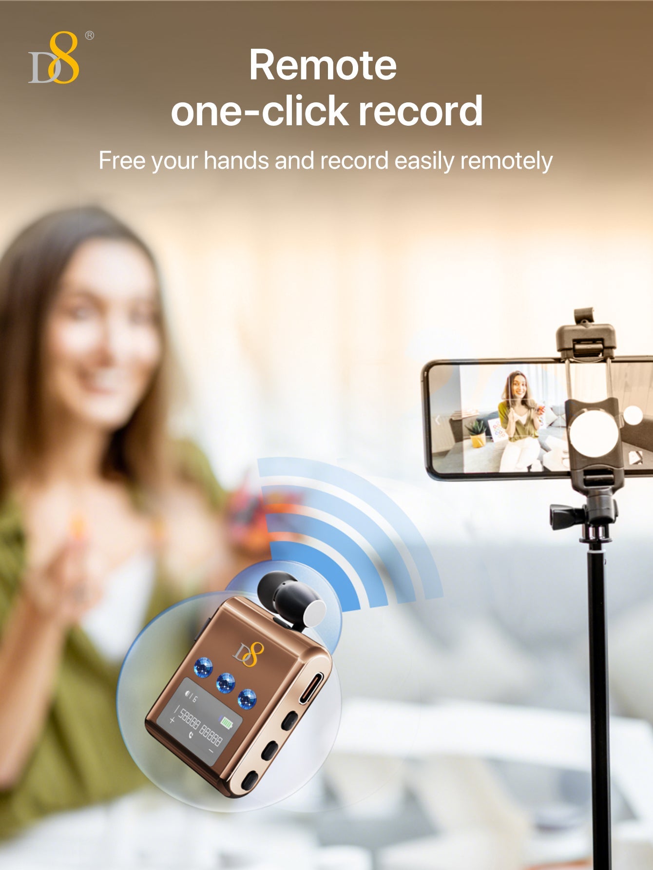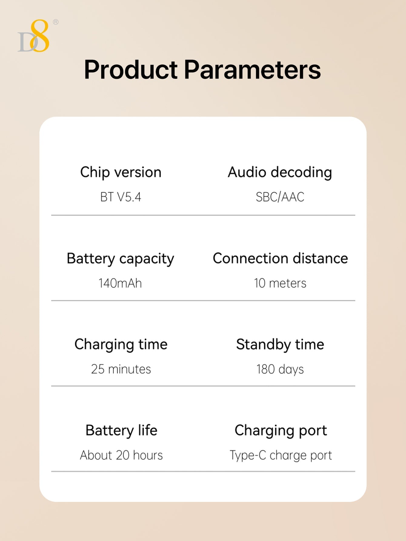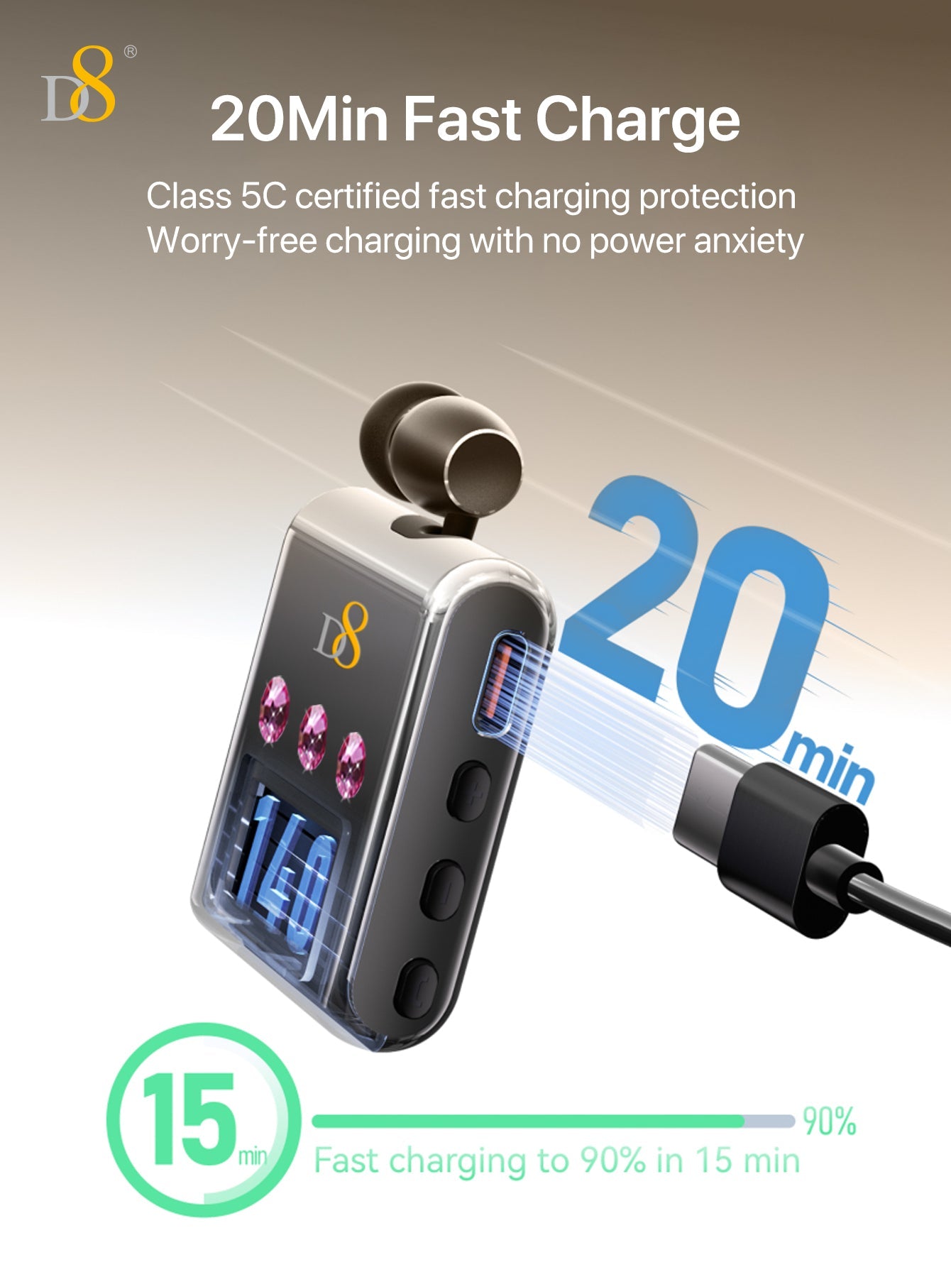 D8 리트랙터블 무선 헤드셋 LED 디스플레이 | 노이즈 캔슬링 마이크 | 20시간 통화 | 클립형 이어폰 | 스포츠 & 비즈니스용