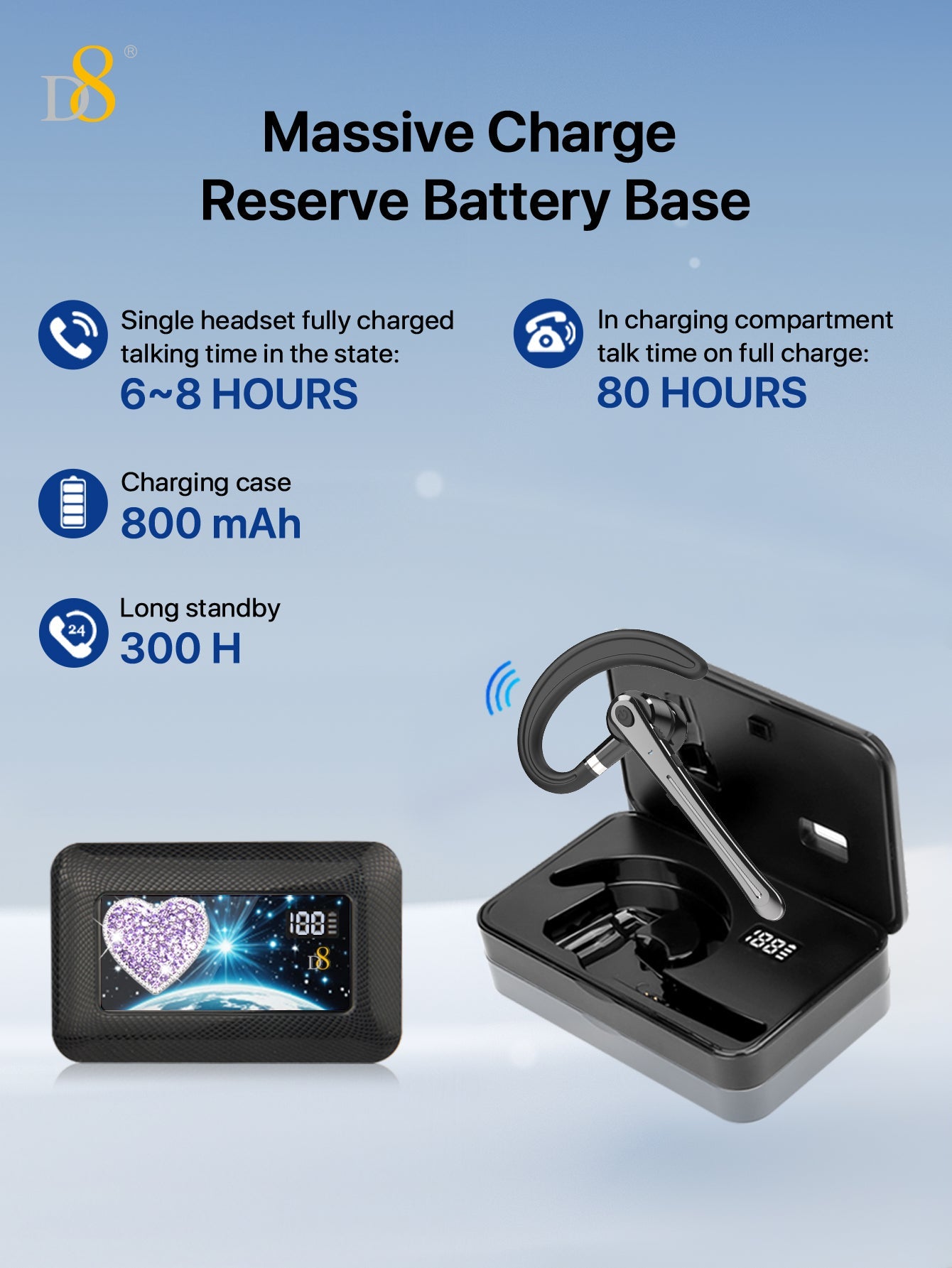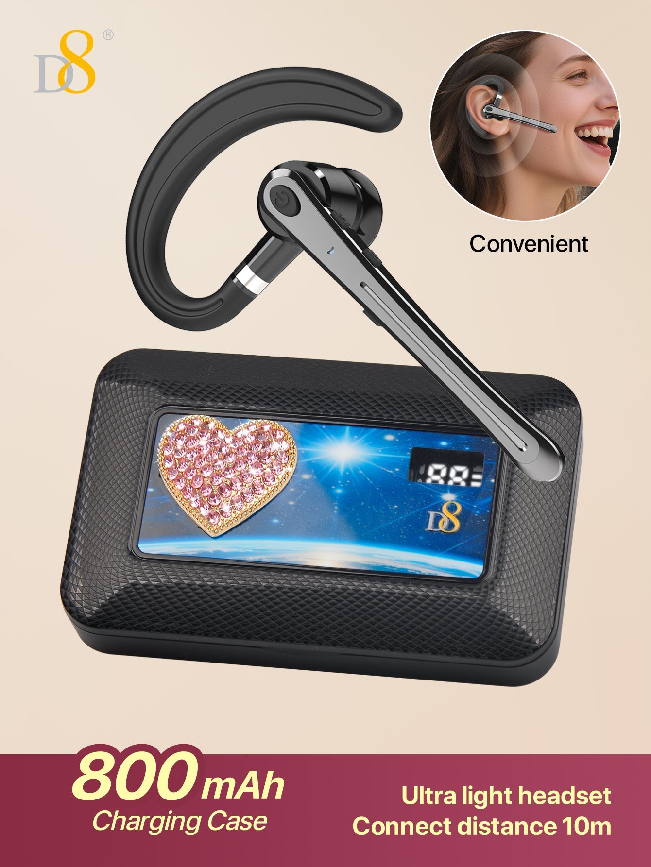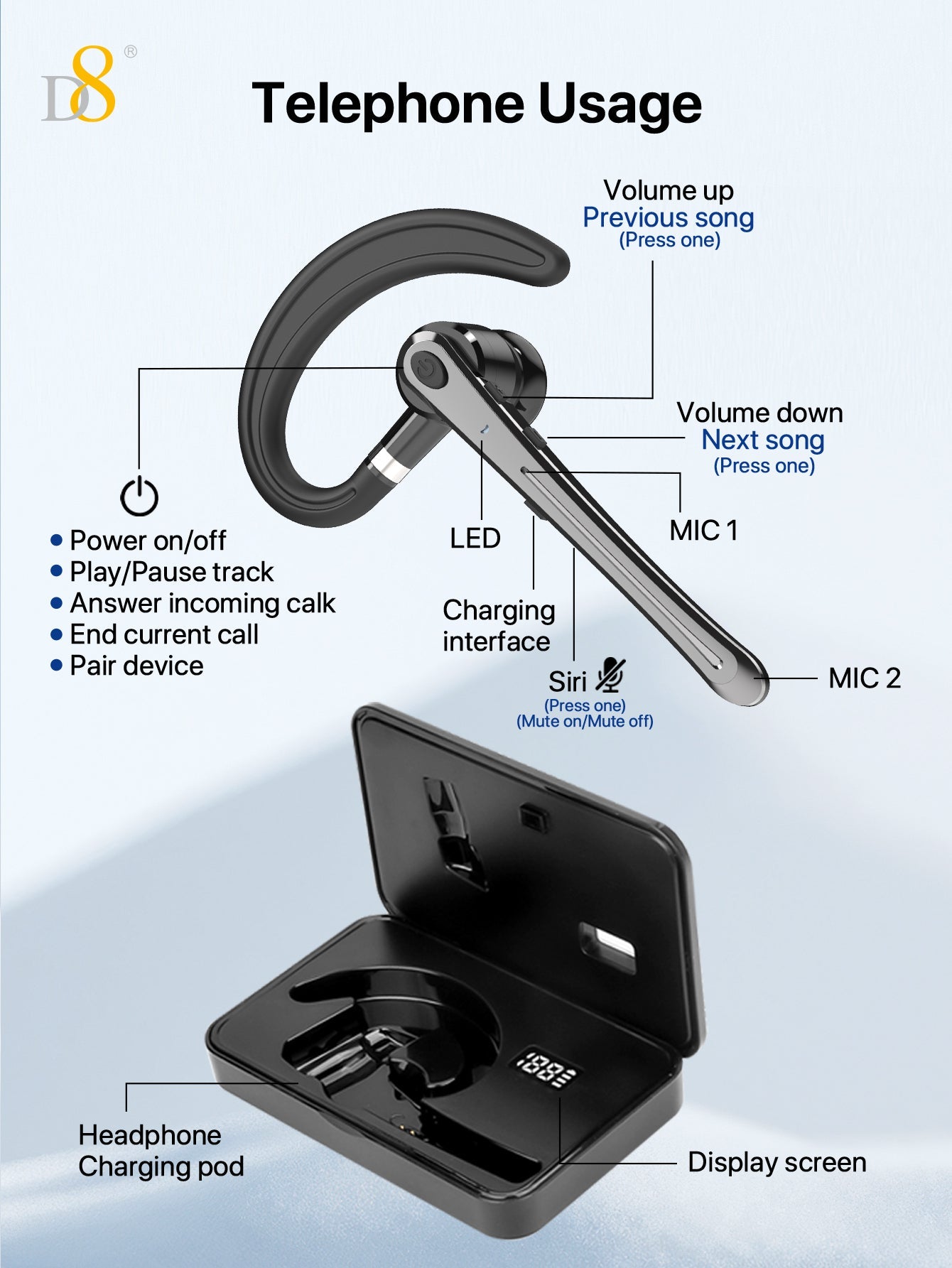D8 무선 이어버드 헤드폰 초대용량 배터리 베이스 탑재 | 최대 300시간 대기 | LED 디스플레이 & 귀걸이형 디자인
